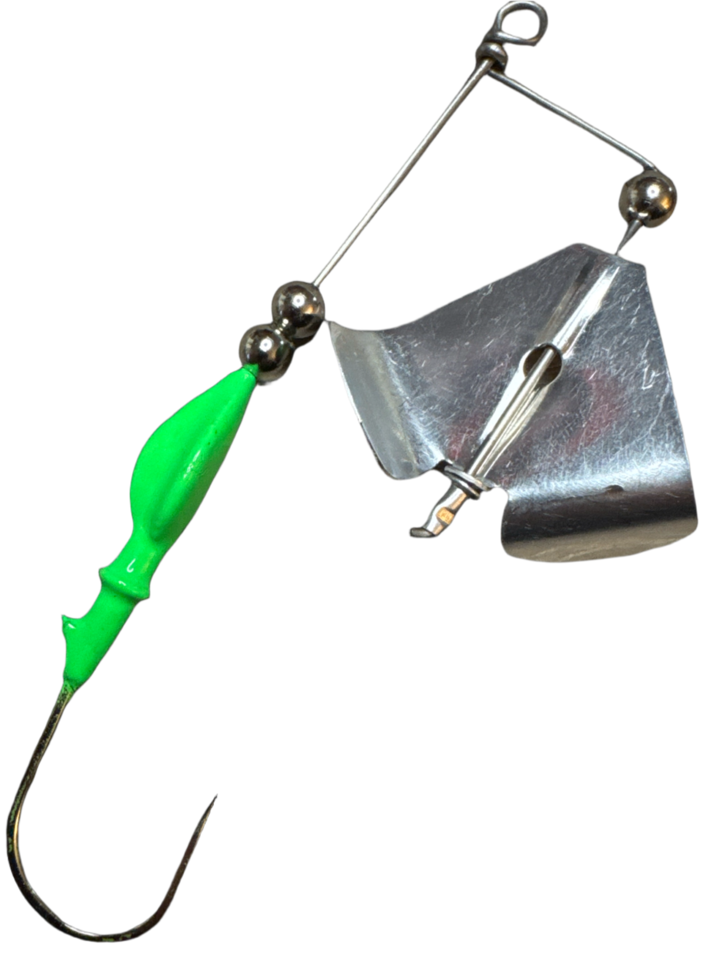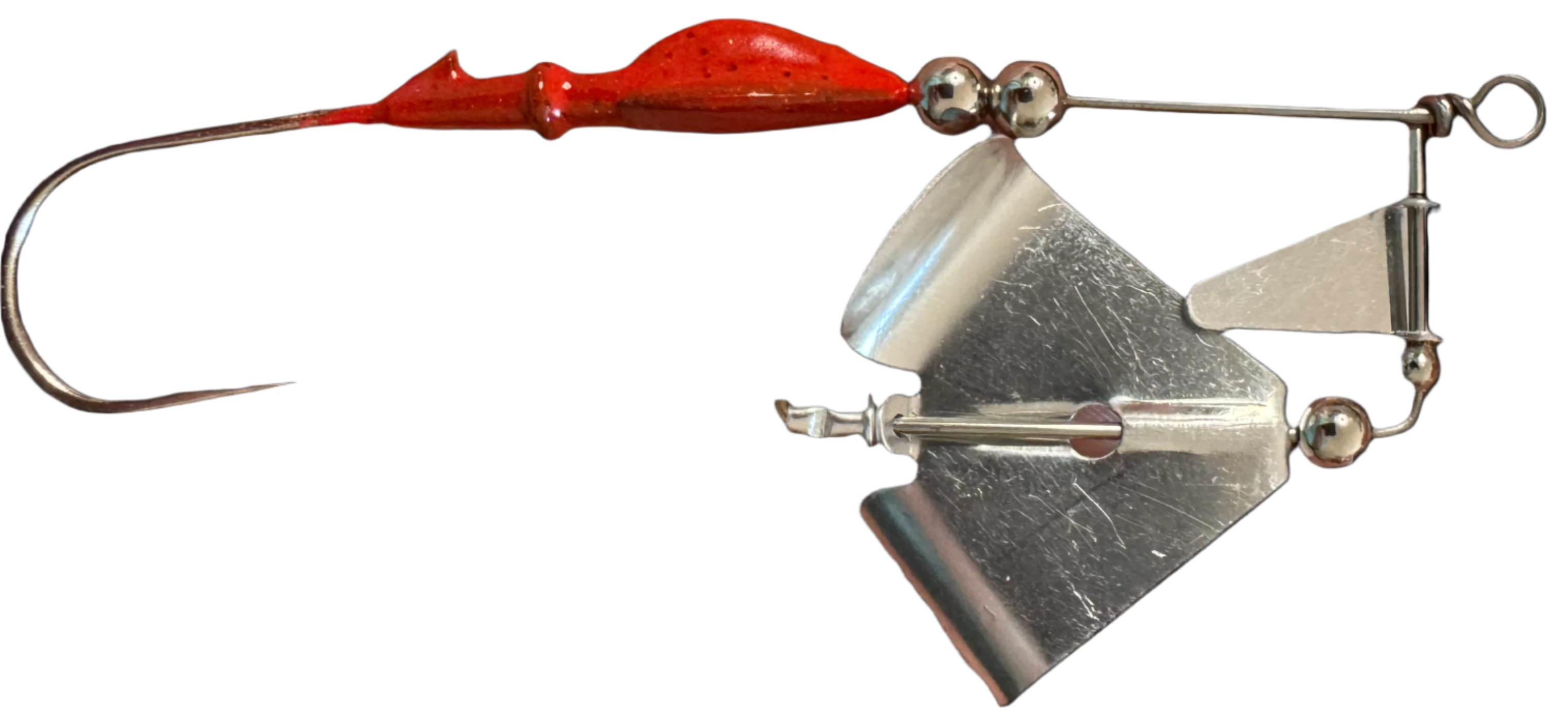 Our in-house micro buzz bait. Strong enough for any freshwater predator fish willing to eat topwater. Pair it with your favorite trailer and just hold on.