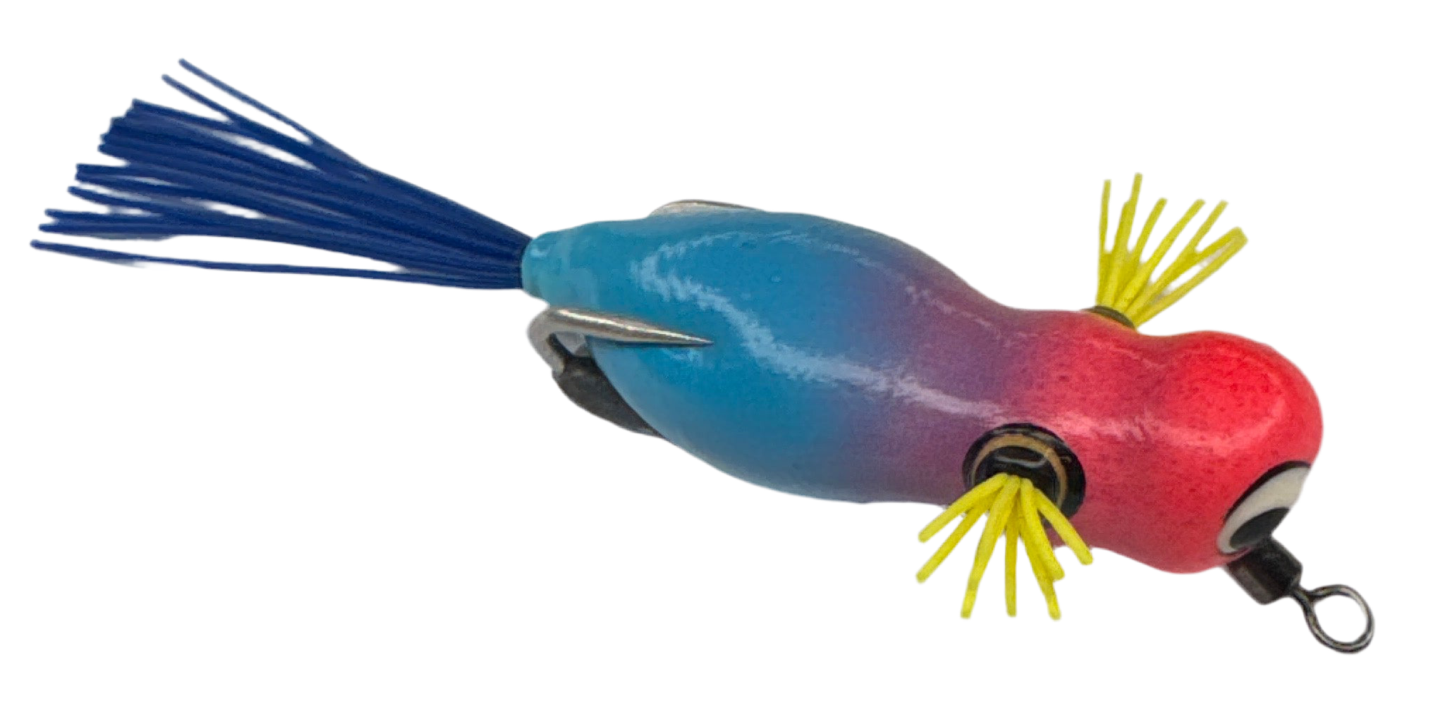 Triple Skirted topwater frog. We purposely chose this design to mimic the dragon flies at our favorite fishing spot.