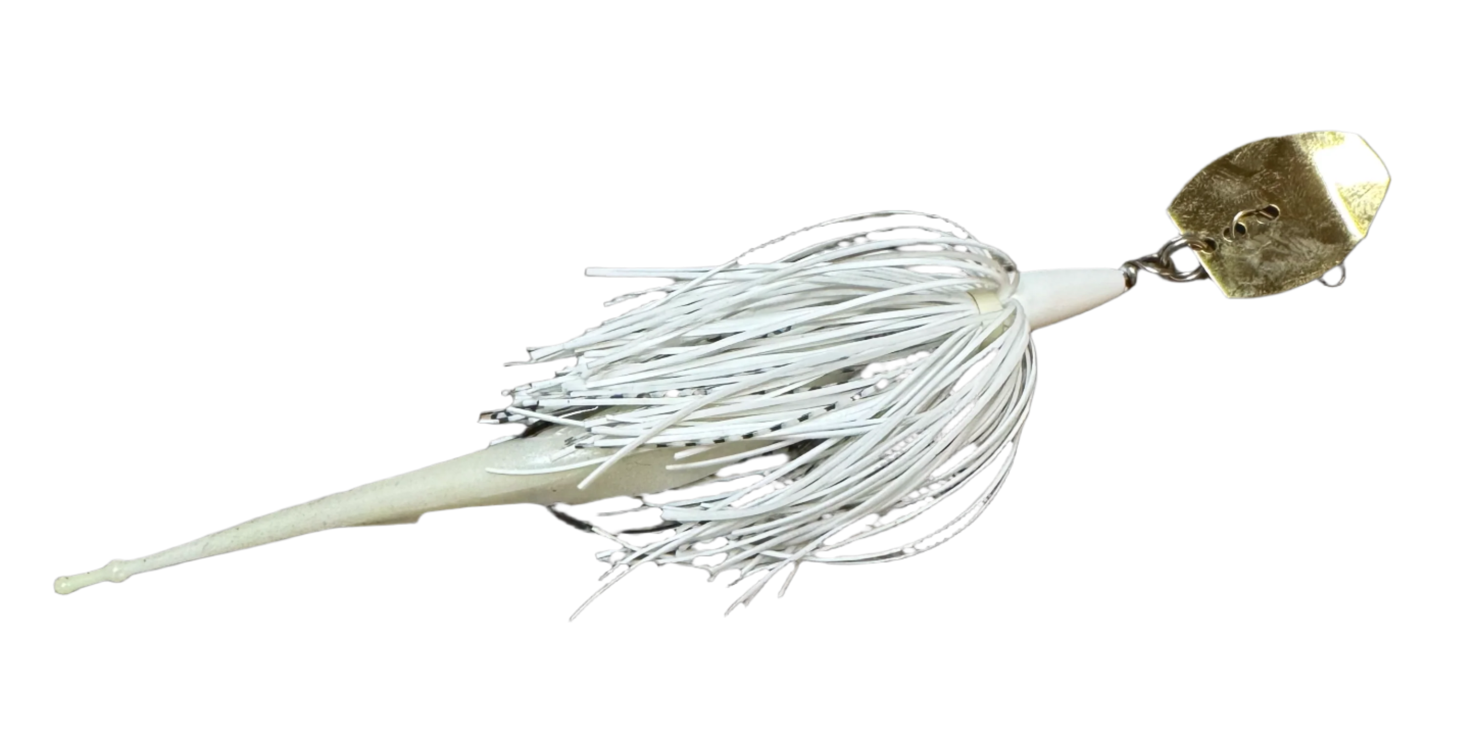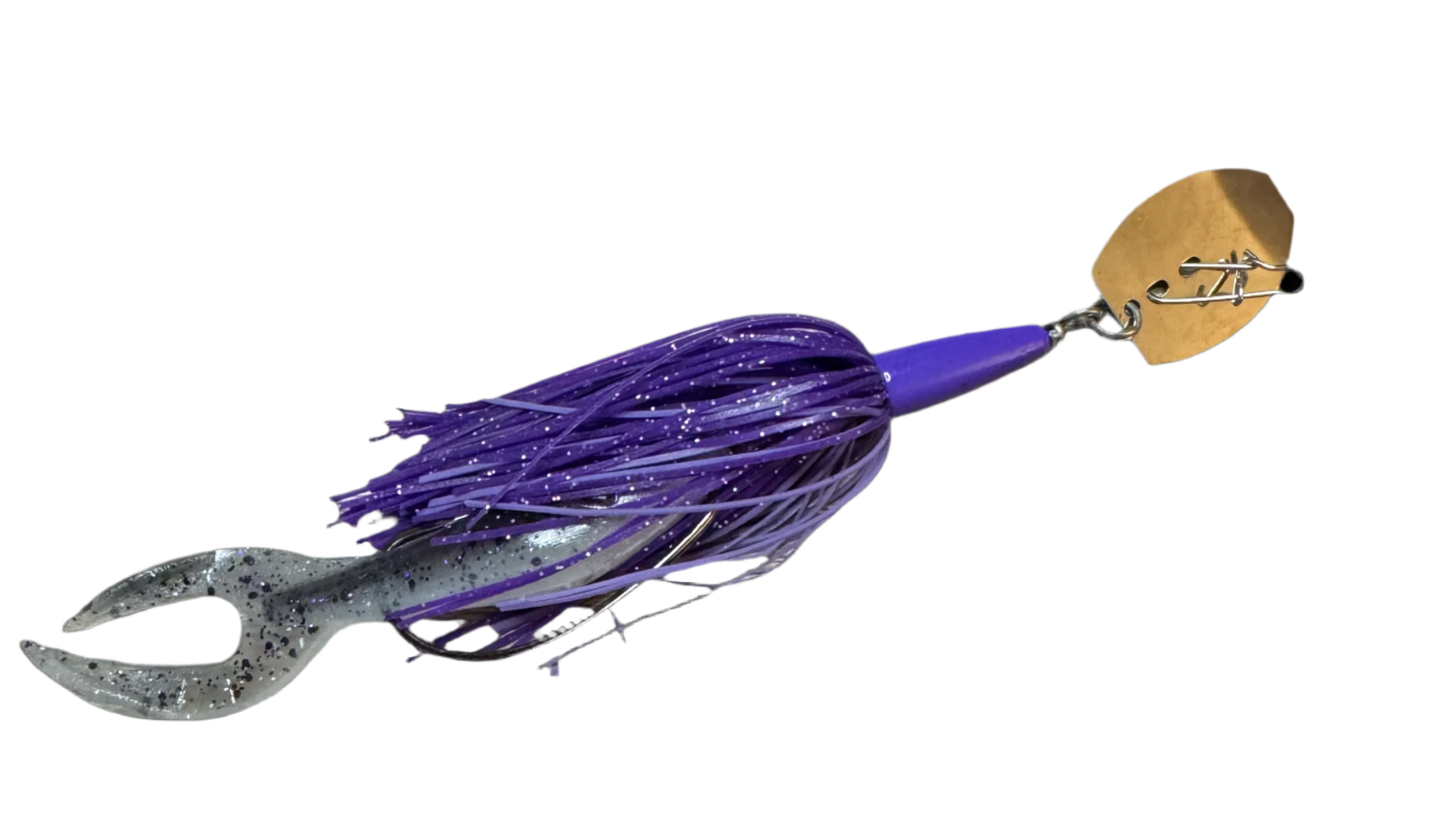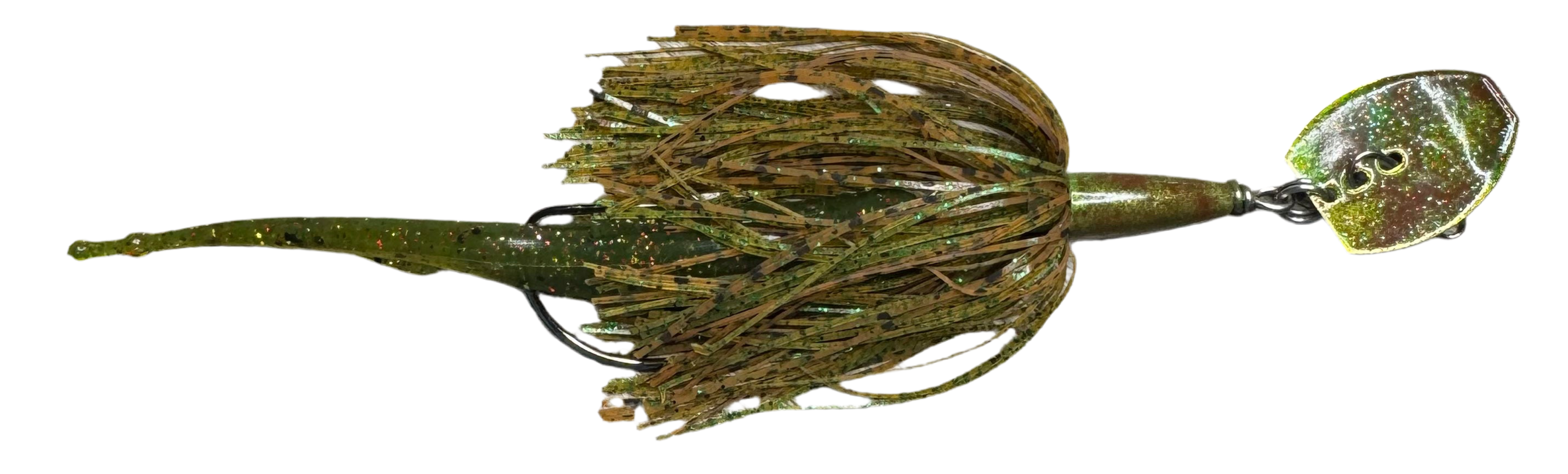 Our version of a weedless bladed jig. Available with 4/0 Gamakatsu Super Line or 5/0 Mustad Ultra Point and ready to be fished with the included soft trailer. Custom colors are available upon request. Trailer options are subject to availability and may need to be substituted.