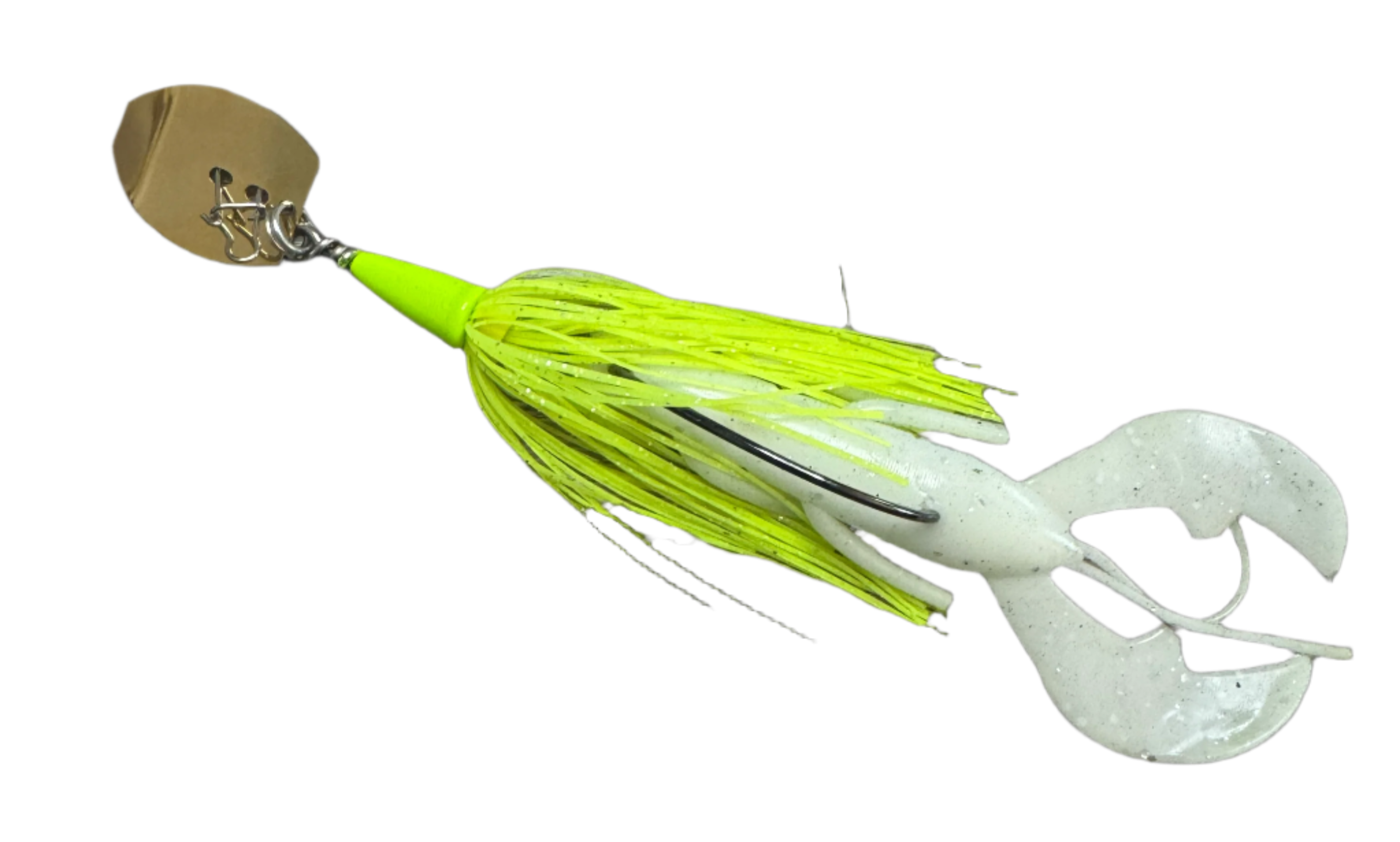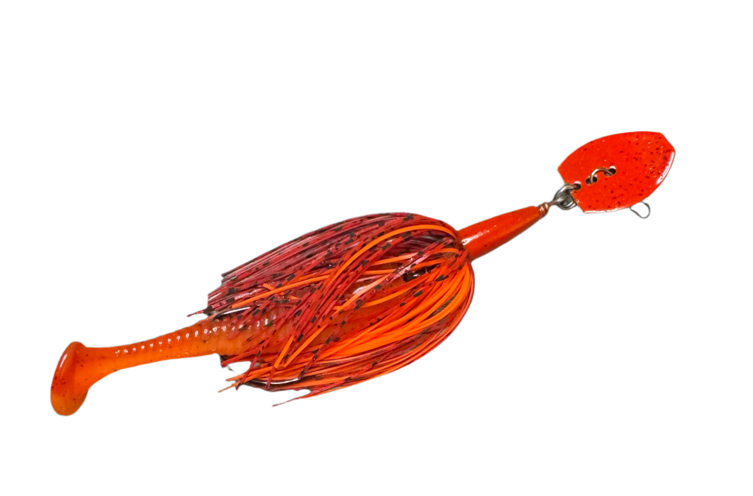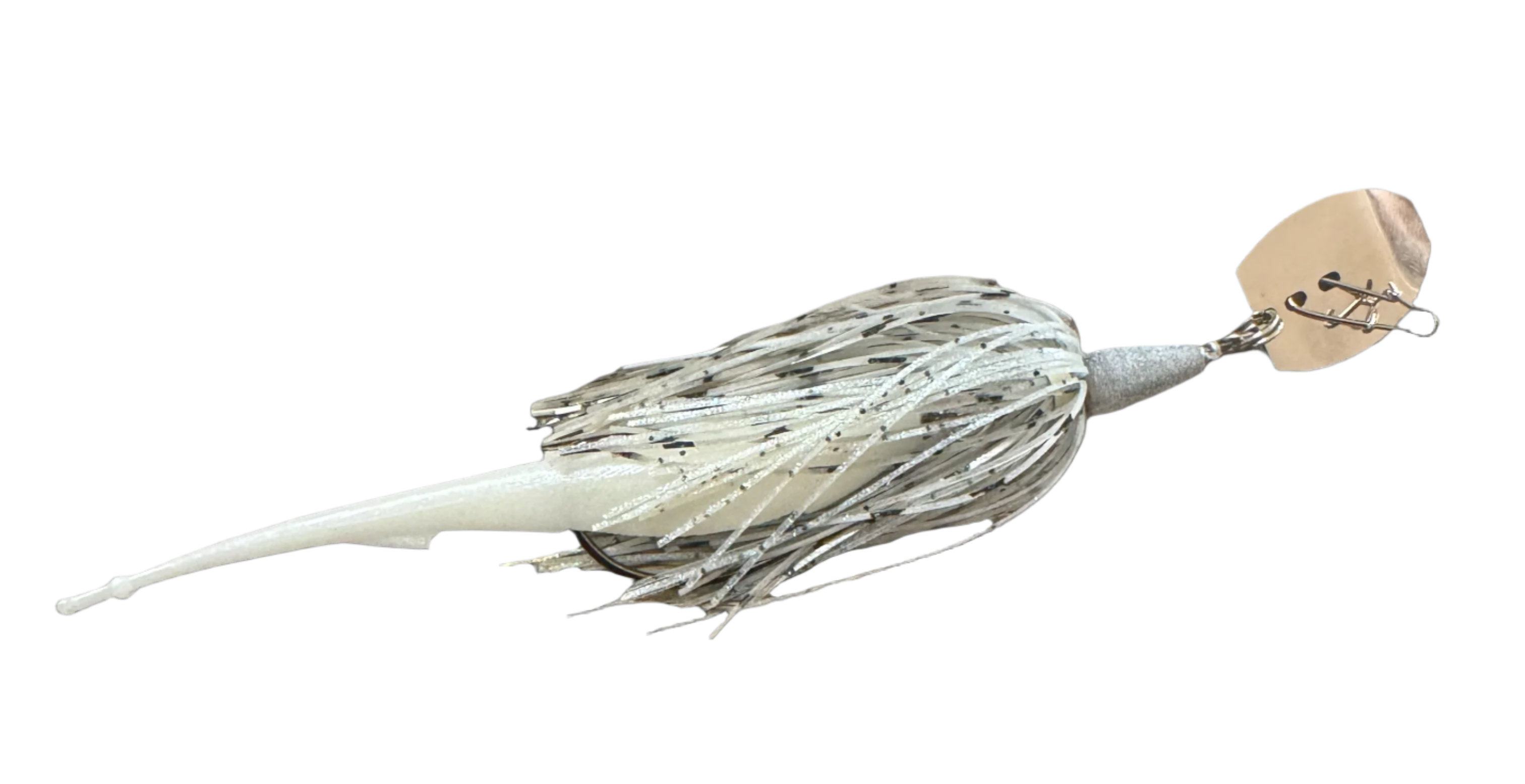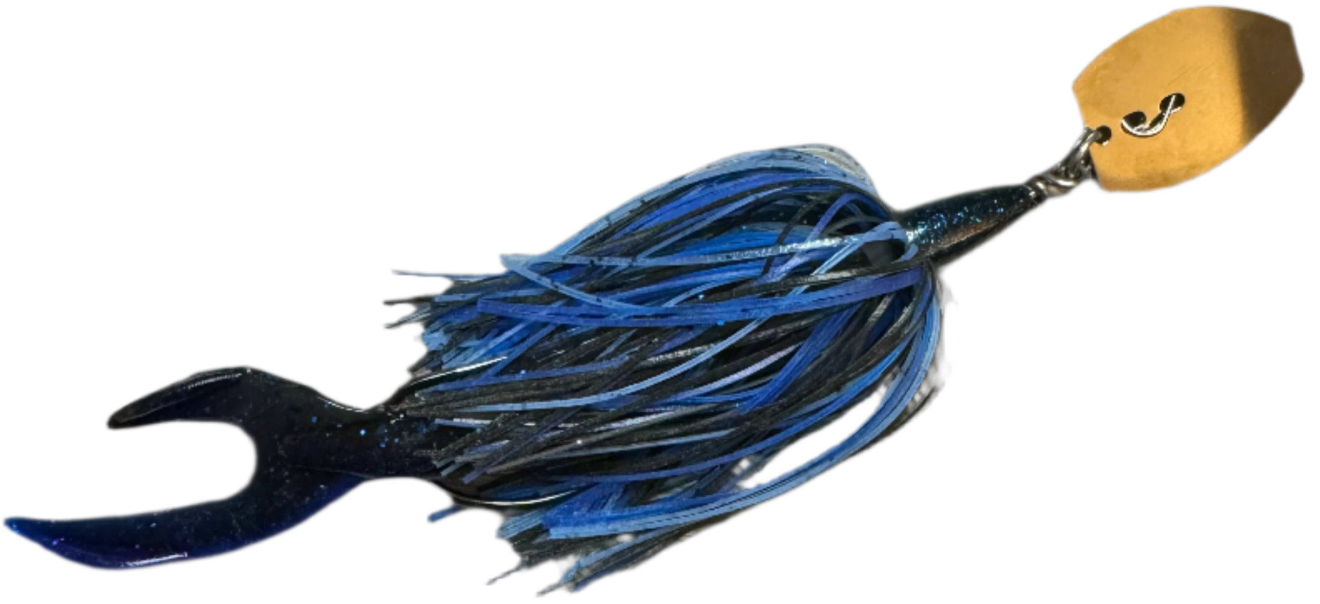 Our version of a weedless bladed jig. Available with 4/0 Gamakatsu Super Line or 5/0 Mustad Ultra Point and ready to be fished with the included soft trailer. Custom colors are available upon request. Trailer options are subject to availability and may need to be substituted.