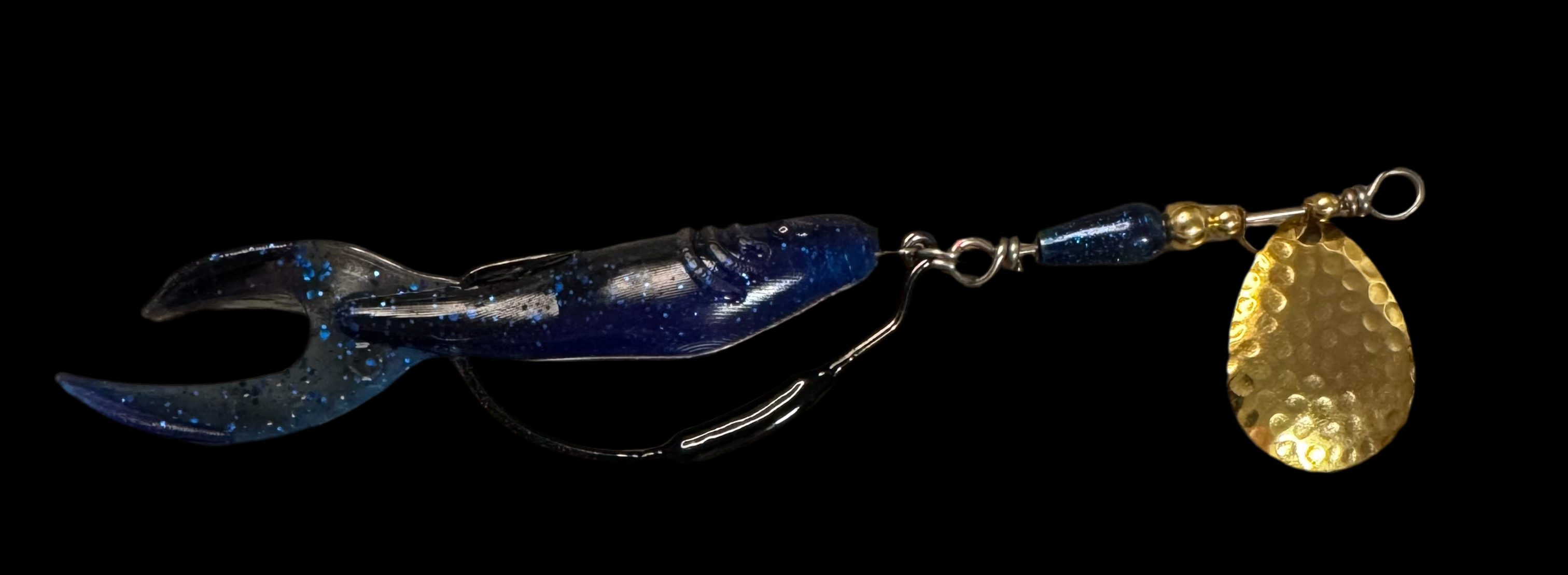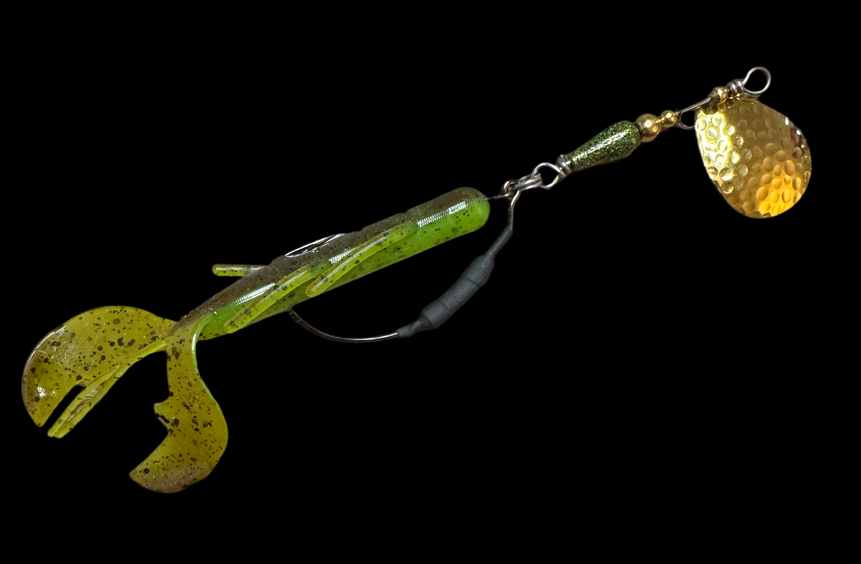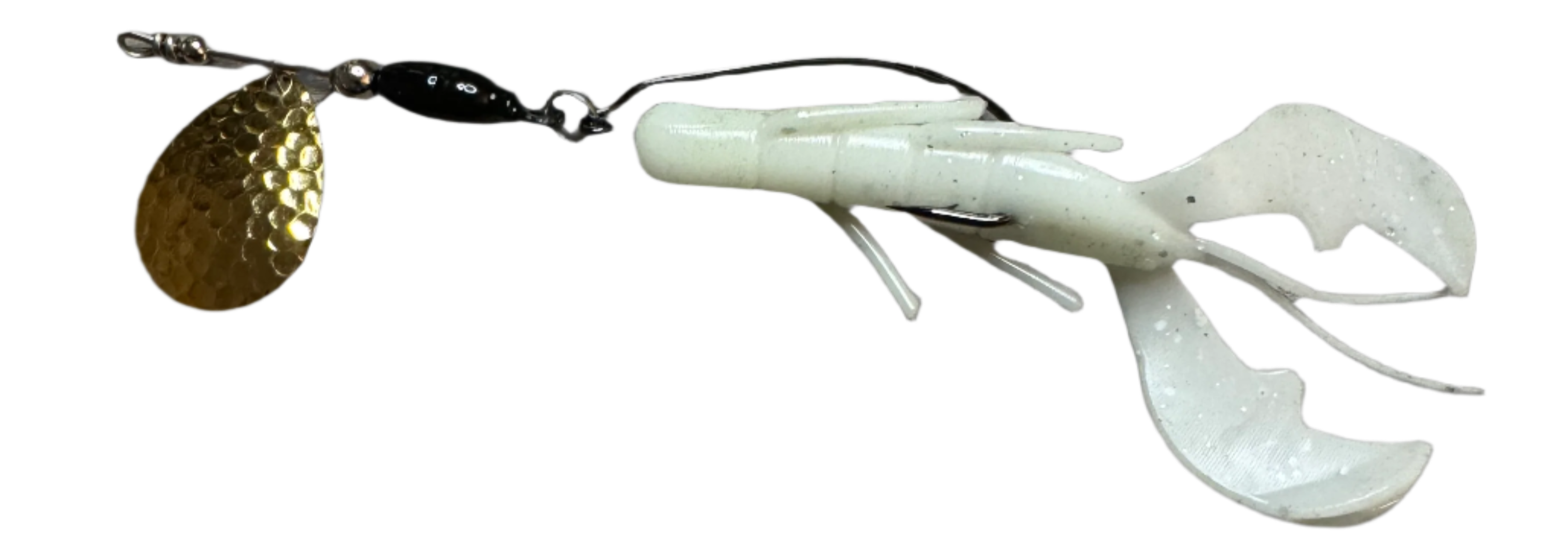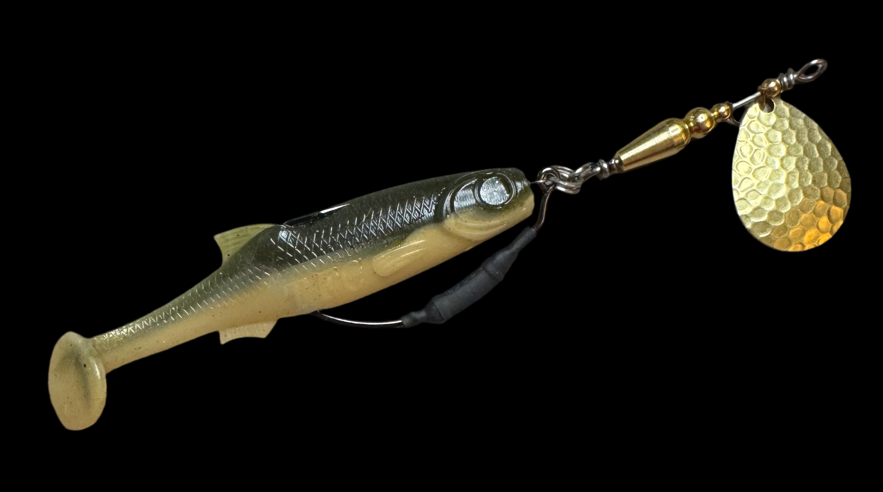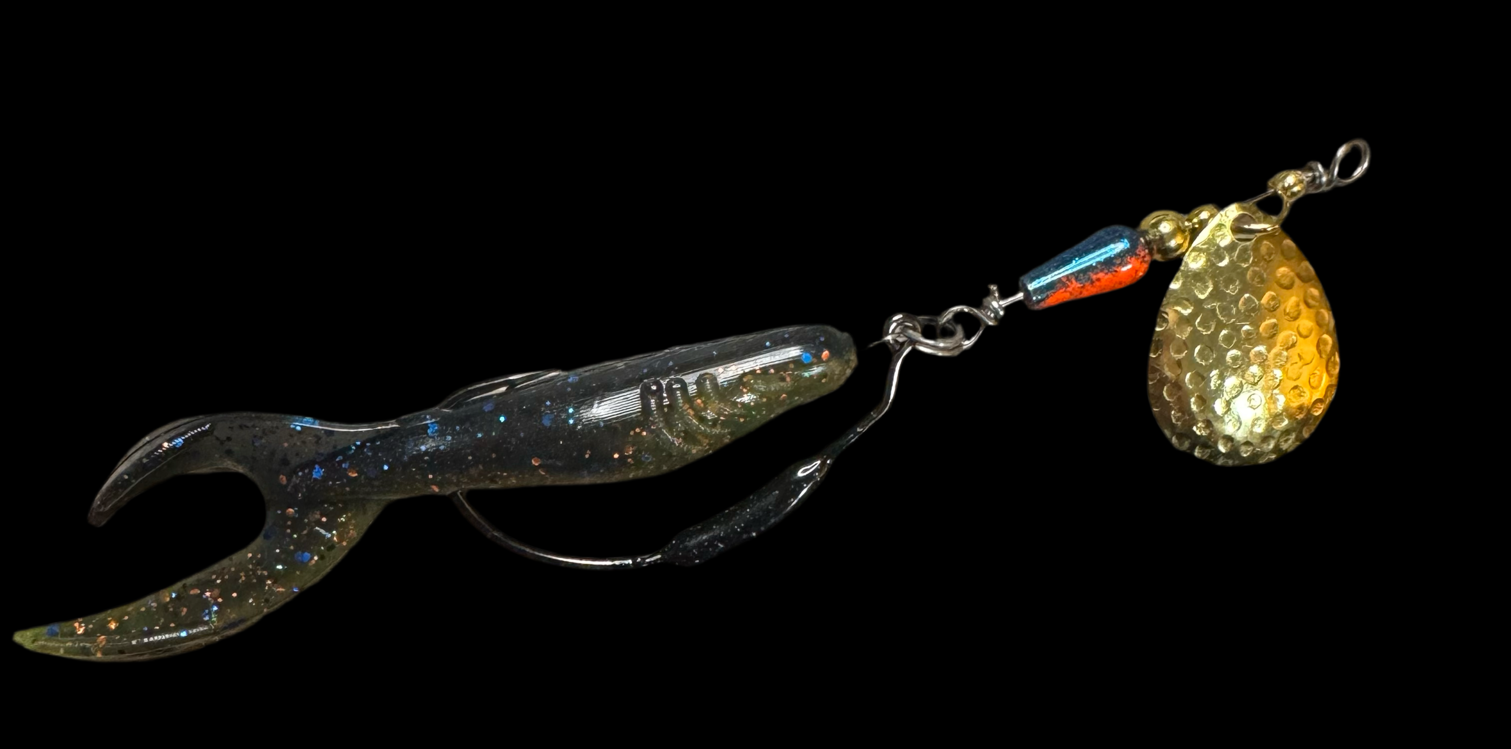Weedless inline spinner bait. Available with a 1/8 oz underspin hook OR a weighted VMC heavy duty Swimbait hook. All Scorpions come rigged with a soft trailer bait. Our bladed hook spinner can be fished like a traditional spinner bait or jigged thanks to the underspin blade. For custom configurations, leave details in the comment box at checkout.