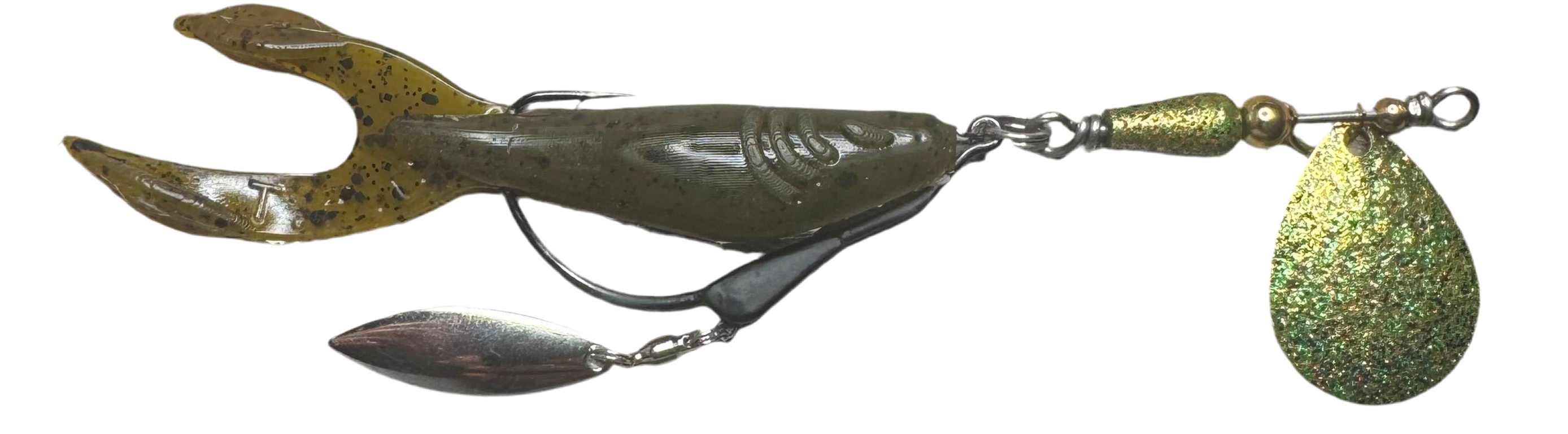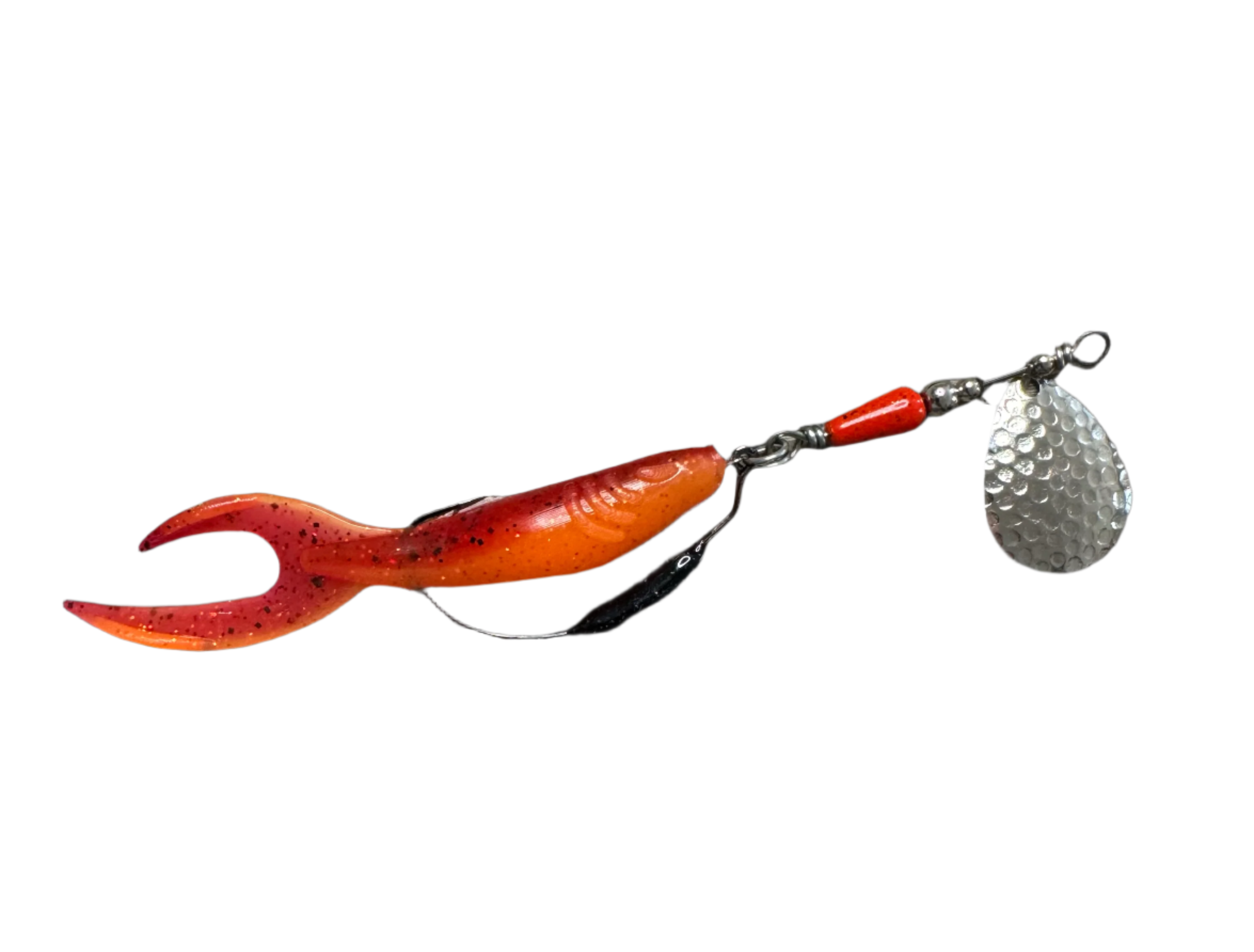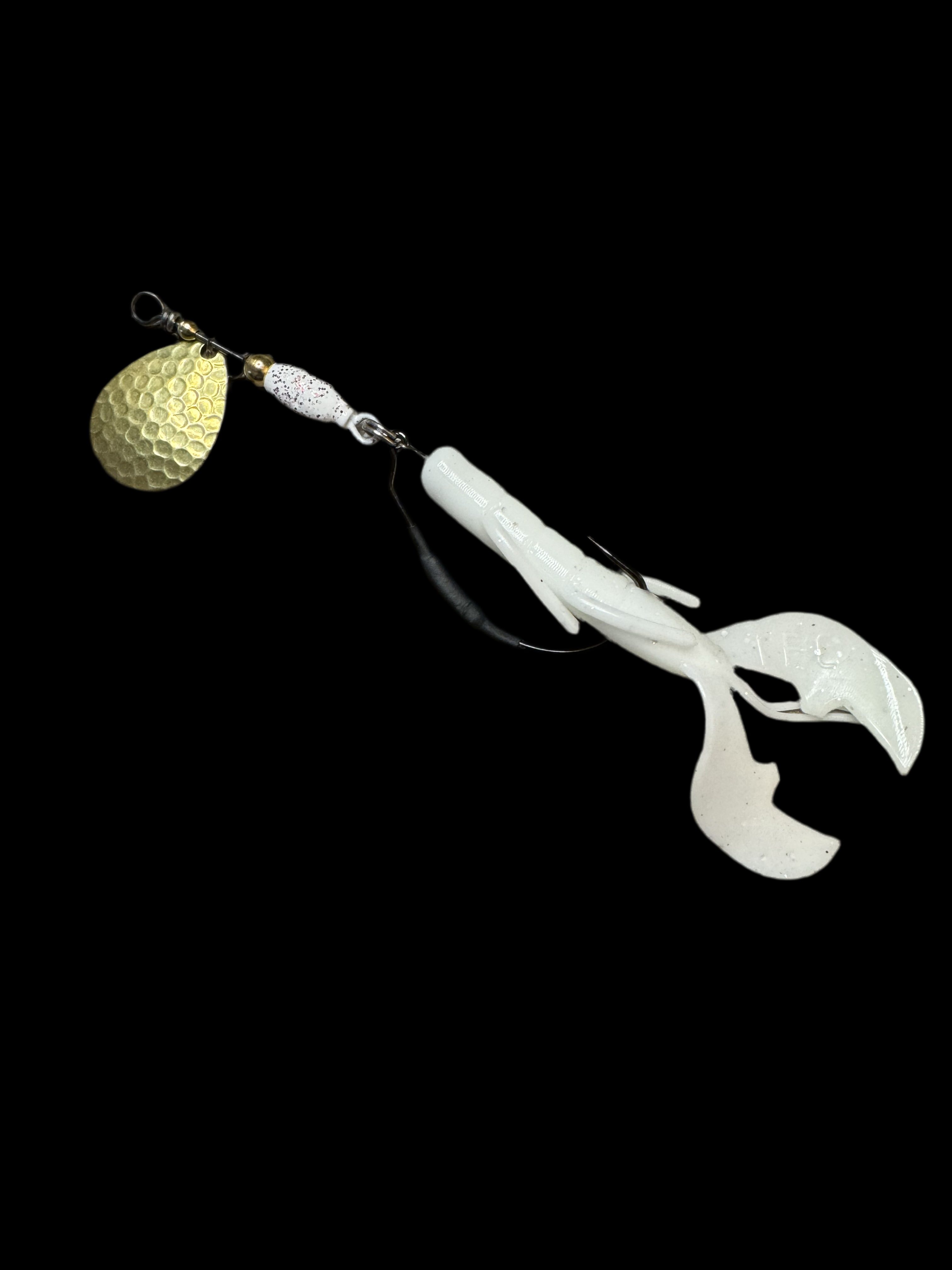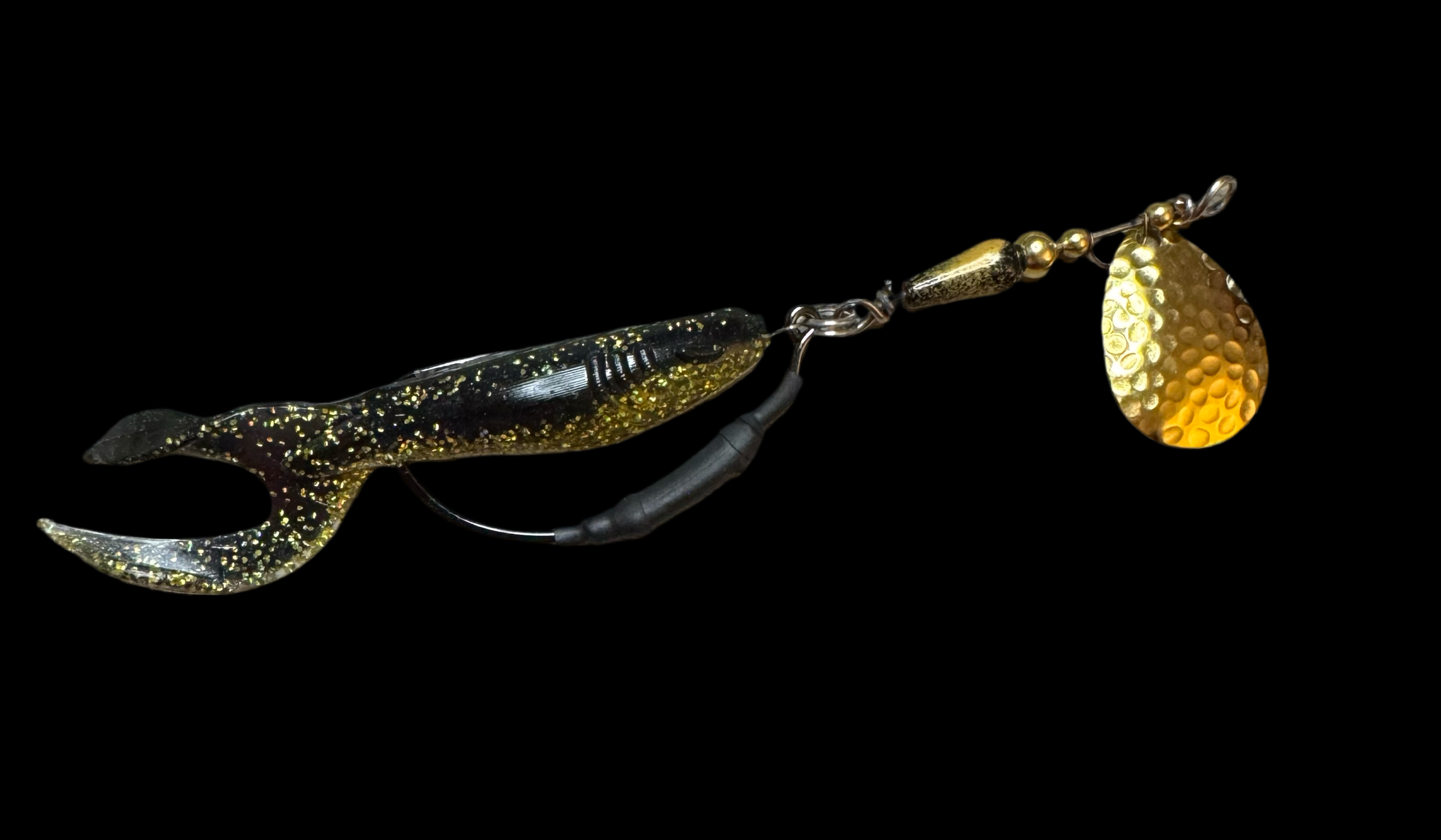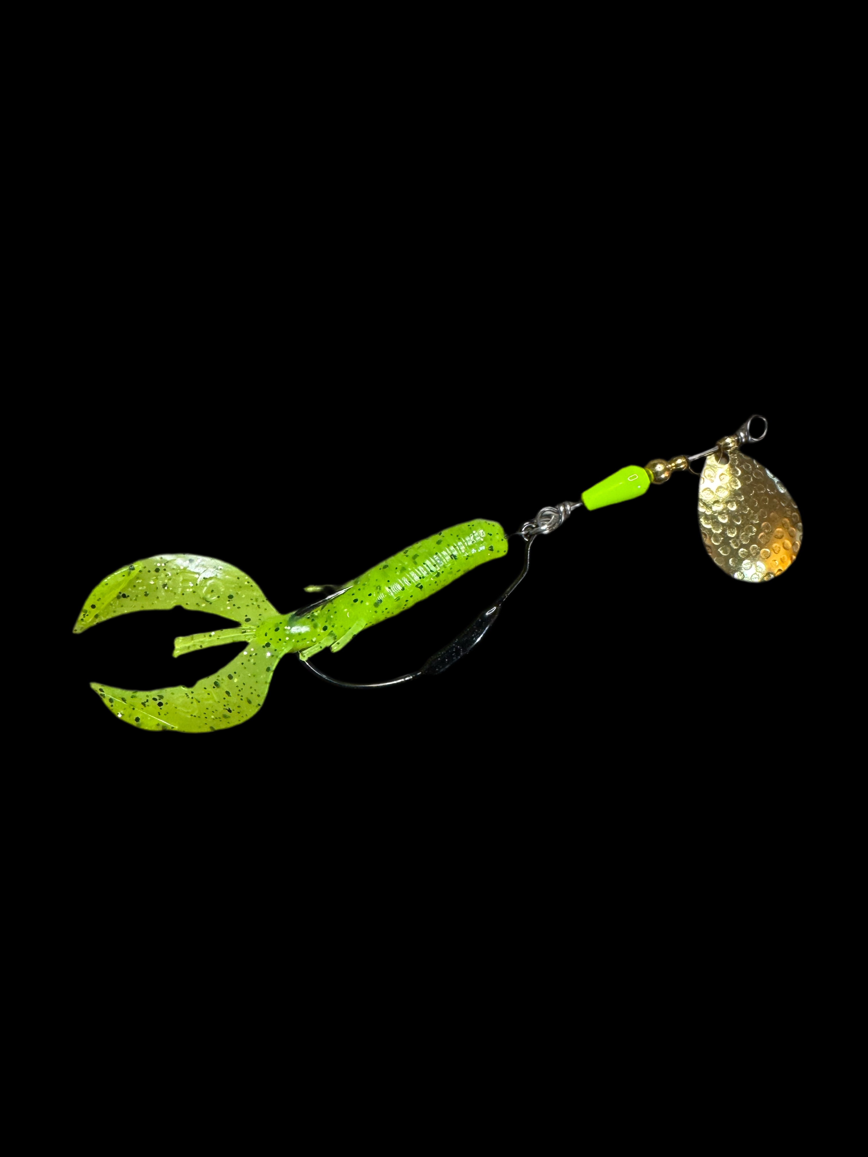 Weedless inline spinner bait. Available with a 1/8 oz underspin hook OR a weighted VMC heavy duty Swimbait hook. All Scorpions come rigged with a soft trailer bait. Our bladed hook spinner can be fished like a traditional spinner bait or jigged thanks to the underspin blade. For custom configurations, leave details in the comment box at checkout.