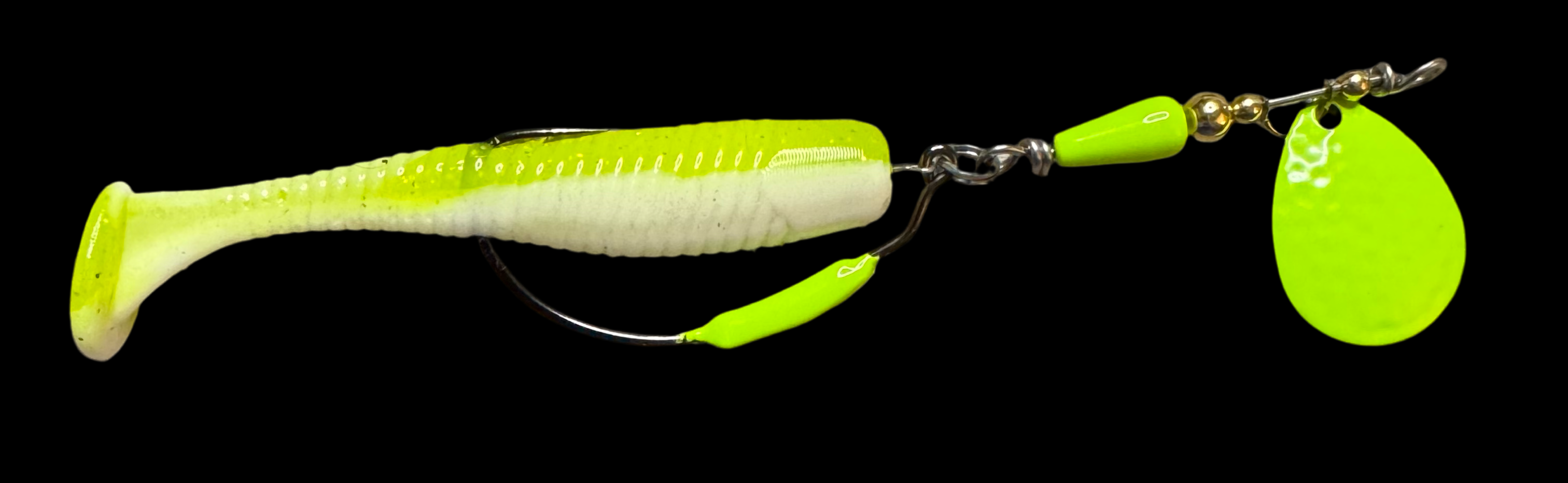 Fish it like our staff: Chartreuse or White body, Nickel or Gold blade depending on water clarity, 5/0 hook size